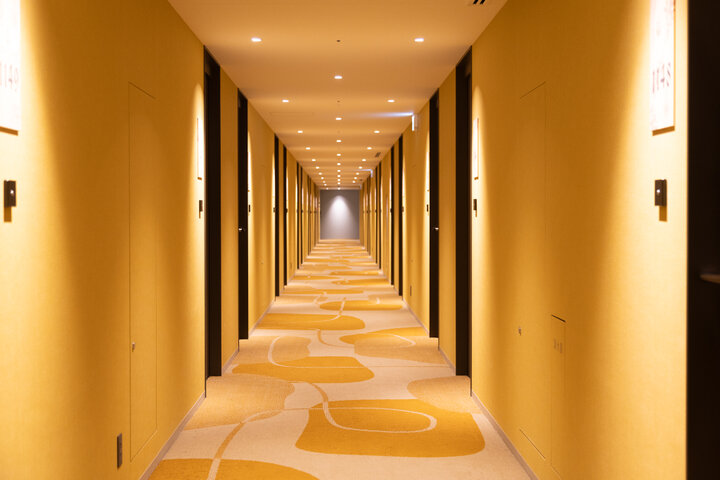 チェックインをすませたら、東西にあるエレベーターで客室へと向かいましょう。館内は青を基調とした東ゾーン、黄色を基調とした中央ゾーン、赤を基調とした西ゾーンで構成されており、視覚的に自分のいるゾーンがわかるようになっています。