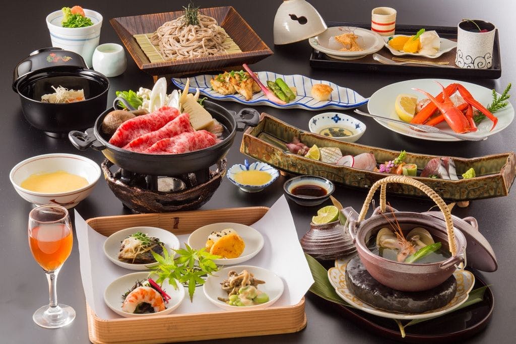夕食は、「現代の名工」安田政男氏を名誉顧問とし、その一番弟子である桐原輝雄料理長による自慢の料理。日本海の幸と島根ならではの素材をふんだんに使った上品な味付けの会席料理を堪能することができます。朝食は「縁結びの神様」出雲大社参拝の思い出に、“三宝膳朝食”を味わえます。真ん中のお盆を三方(三宝)に見立て、大社にちなんだ縁起の良い食材を三つの器で表現しています。