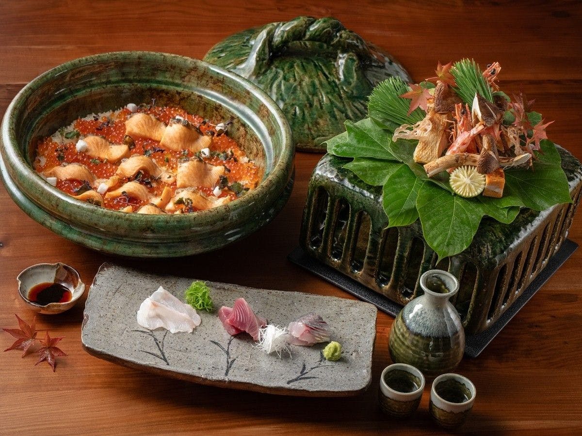レストランの料理長は、2019年より2年連続、2023年もミシュランにて一つ星を獲得した京都の割烹「東山 吉寿」にて長年修行を積んだ愛弟子。一人一人の好みや体調に合わせた、唯一無二の味わいを楽しむことができます。日本・出雲の伝統文化や旬の食材と向き合い、純真無垢な遊び心が表現されたこだわりの器にて提供されます。