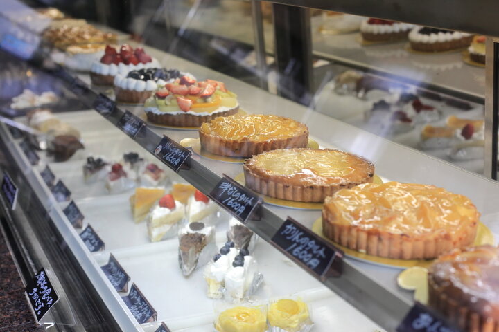 「万治の石仏」にお参りした後は、石仏をモチーフにしたお菓子をお土産にしてみませんか。訪ねたのは、下諏訪で50年以上愛されている「フレール洋菓子店」。シュークリームや地元の名産であるかりんを使ったタルトなど、長年受け継がれているお菓子が並んでいます。