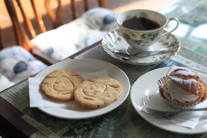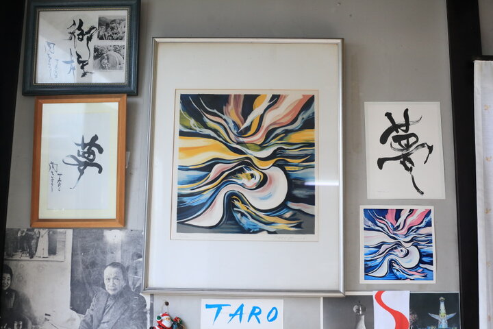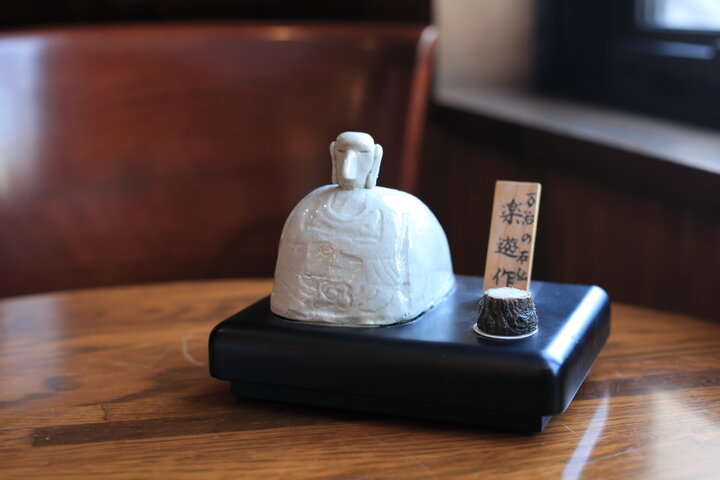 「万治の石仏」を絶賛した岡本太郎氏もこちらの店を何度か訪れたことがあり、氏のサインや写真が店内には飾られています。石仏クッキーのパッケージの文字も実は、岡本太郎氏により書かれた文字。店内にはカフェスペースもあるので、コーヒーとお菓子をいただきながら、ぜひお店の方に岡本太郎氏の話を聞いてみてくださいね。