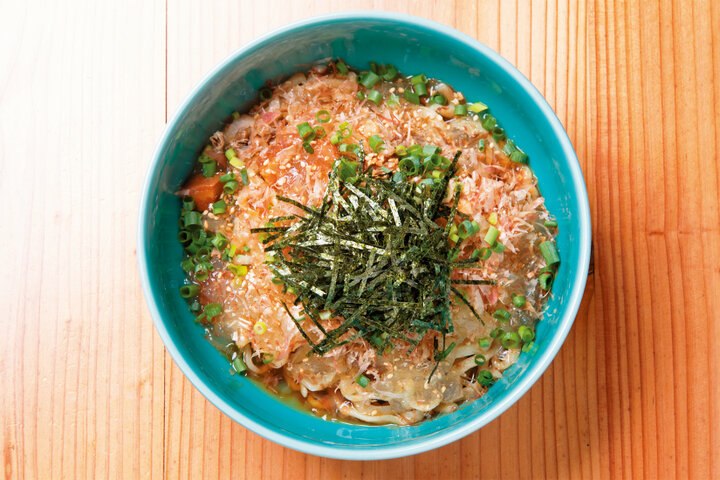オリジナリティあふれる沖縄そばのメニューが充実。沖縄そばのスープを冷たいジュレ状のタレにし、ぶっかけスタイルで味わうそばや、塩軟骨ソーキそばなど、どれもここならではの味が楽しめます。