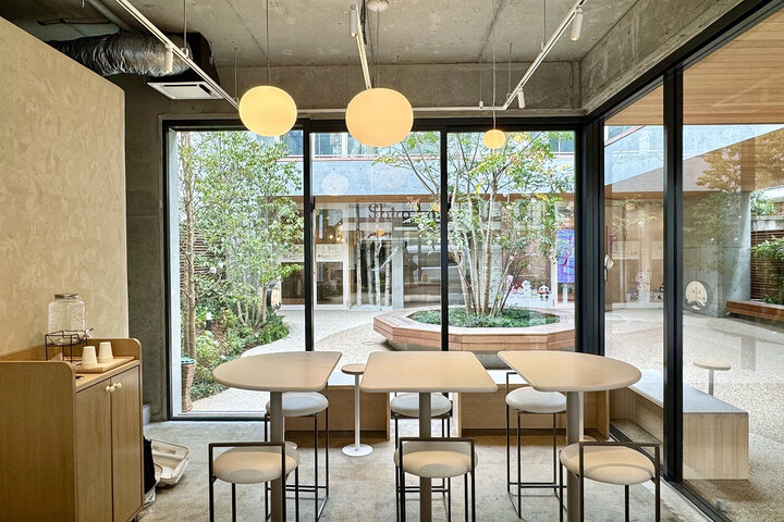 緑あふれる中庭を眺めながら過ごせるミルクカフェ