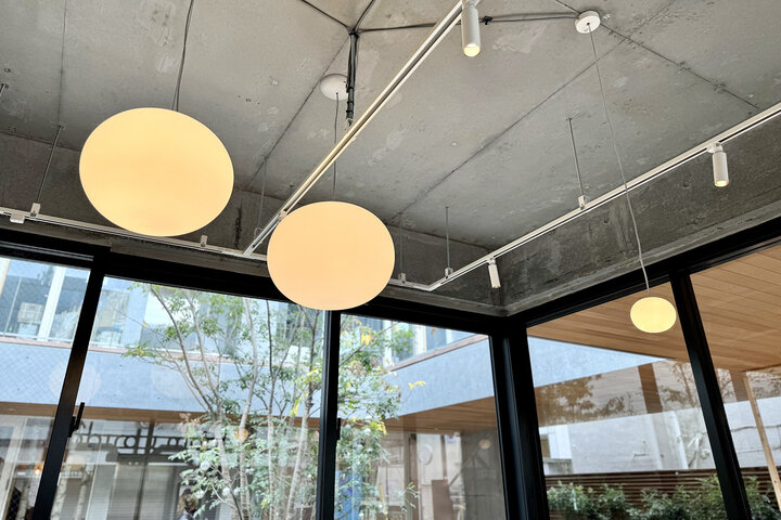 お店のロゴの形をしたペンダントライトが店内を温かく照らす