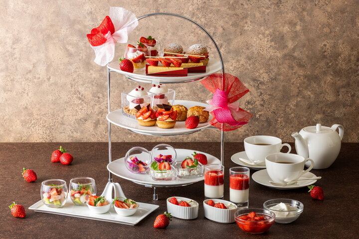 川崎日航ホテルでは、福岡県産の苺“博多あまおう”を使用した各種メニューが楽しめる「博多あまおうフェア」を、2026年1月10日から3月31日まで開催しています。期間中は、バーラウンジ「夜間飛行」およびペストリーショップにてフェアメニューを提供するほか、チョコレート付き宿泊プランの販売も行います。 『博多あまおうのパフェ』は、果肉入りのあまおうソースに北海道根釧生クリームやクッキークランブル、アイスなど10層を重ね、仕上げにジューシーなあまおうを贅沢にトッピングしました。 このほか『博多あまおうのアフタヌーンティー』では、シュークリームやベイクドチーズケーキ、タルトなどのスイーツに加え、セイボリーには「あまおうと生ハムのブロシェット」など、全13品を楽しむことができます。
