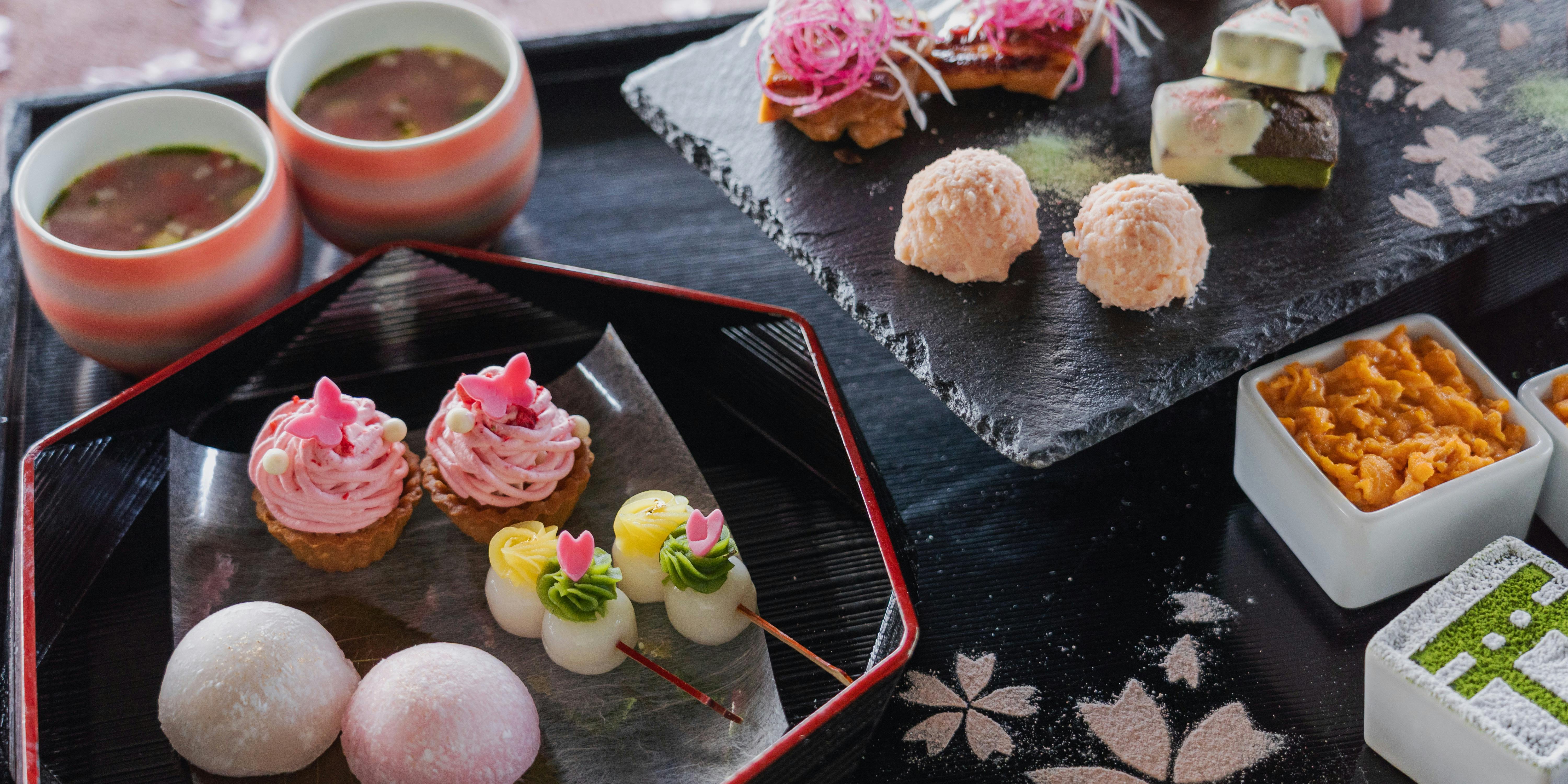 待望の苺のアフタヌーンティーが今年も登場。京都らしい木箱の器で、唯一無二のホテルアフタヌーンティーを。別皿で提供する「苺のグラスパフェ」は、苺のディプロマットクリームやムース、フレッシュ苺を重ねた華やかな一品。その他苺を使ったミルフィーユやパンナコッタなどのスイーツに加え、和牛のタリアータや苺とモッツァレラの生春巻き、食事系スコーンなど、甘い物の合間に思わず手が伸びるセイボリーも充実しています。