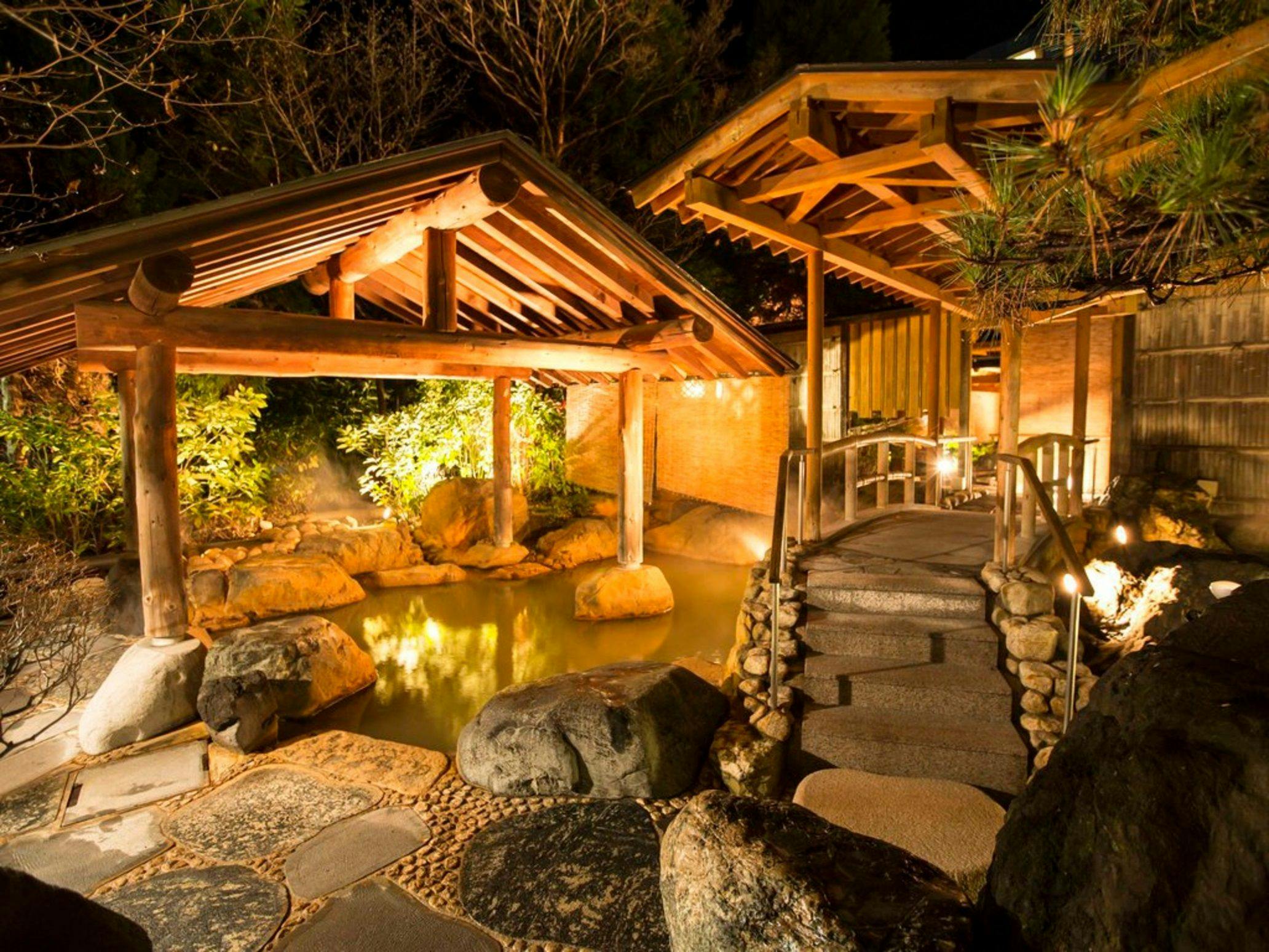 伊香保温泉(源泉黄金の湯)は、湯の中に含まれる鉄分が空気に触れ酸化して独特の茶褐色となるのが特徴です。 湯と眺めにこだわり本館、離れ、浴室棟、足湯と合わせて13ヶ所のお風呂は全て源泉100%かけ流しです。食事は、四季おりおりの食材を生かした料理を楽しむことができます。
