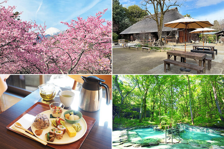 いよいよ春の足音が聞こえ始める季節。神奈川県西部の足柄上郡松田町にある「松田山」では、ひと足早く河津桜が見頃を迎えます。富士山を望むピンク色の絶景を楽しんだあとは、趣ある緑茶カフェでランチを楽しみ、江戸時代にタイムスリップしたかのようなスポットへ。旅の締めくくりは、森の中で美肌の湯に浸かる……。心ほどけるひとときに出会う、春の日帰り旅プランをご紹介します。