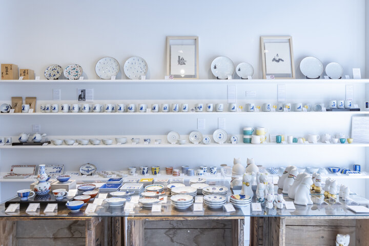 香林坊裏通り、せせらぎ通りにある「金沢長右衛門」。白を基調とした空間には、窯元が明治期から受け継いできた伝統と高い技術が宿る職人技を象徴する器から、伝統に新しさを加えた今の暮らしにしっくりと馴染む作品まで。九谷焼の多彩な魅力と、職人の手仕事を感じられます。 うつわの成形を自社で手がけているので、形もいろいろ。手元に置きたくなる自分好みの器が見つかる、工芸アートなお店です。