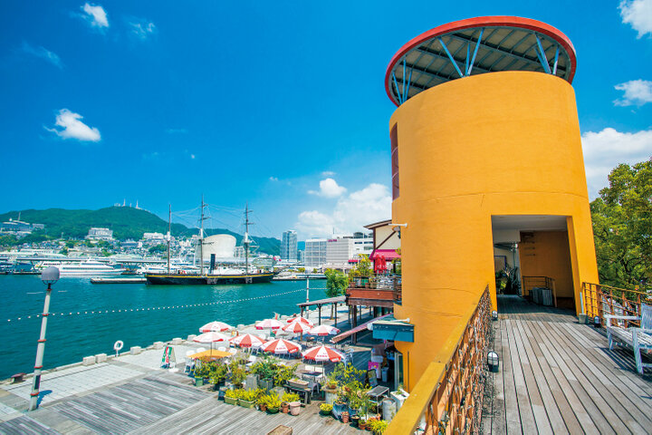 長崎港近くの複合施設で、飲食店を中心に多彩な店舗が集まっています。稲佐山や女神大橋が眺められ、ライトアップされた夜はロマンチック。海を望むカフェでときを過ごすのもおすすめです。