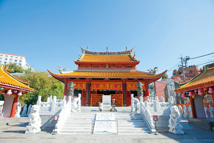 1893(明治26)年、清朝政府の提唱により、中国国外で唯一中国人によって建立された孔子廟。奥に博物館を併設しています。不定期に変面ショーを開催しています。