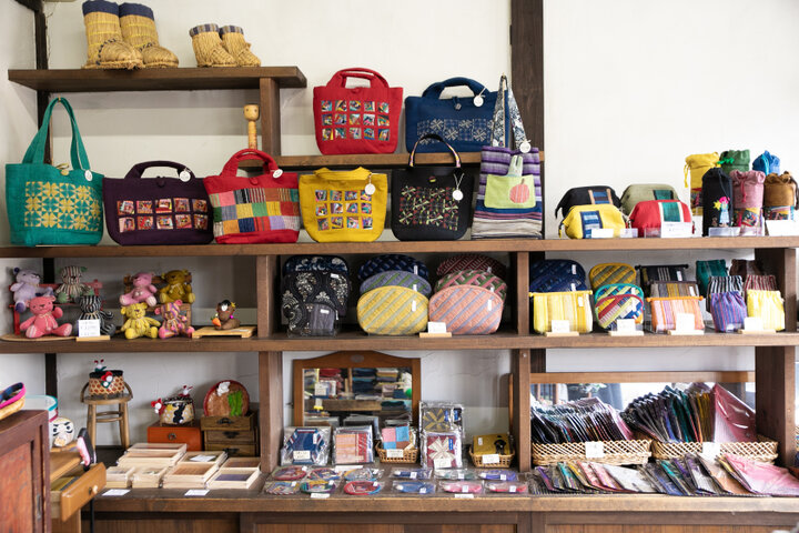 会津木綿生地の手作りアイテムがずらり
