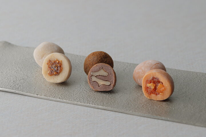 左からはるか-遥果-、香木実、是山。各5個入りの3種詰め合わせ2400円