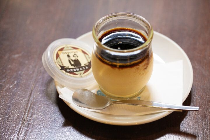 酒粕ぷりん550円、ドリンクとセットで950円