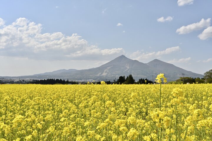 磐梯山のふもとに広がる菜の花畑