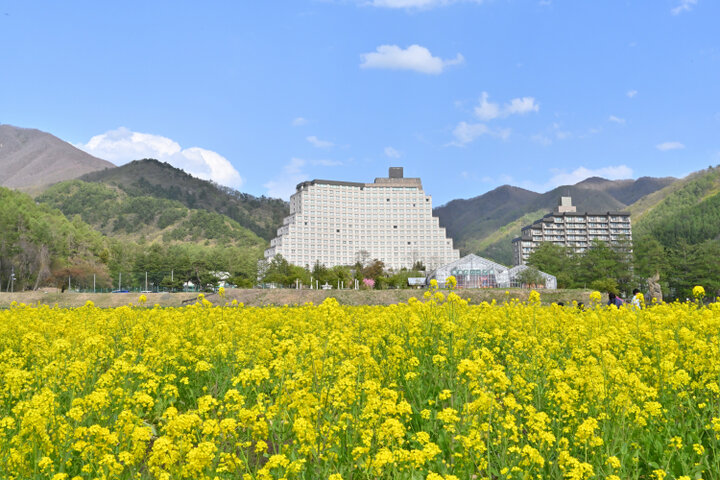猪苗代ハーブ園は、ホテルリステル猪苗代の建物前に広がるハーブガーデン。約10万㎡の広大な敷地に、ラベンダー、ミント、カモマイルなど約200種のハーブと季節の草花が栽培されています。 春はチューリップやシバザクラ、菜の花が高原をカラフルに彩ります。初夏から夏にかけてはカモマイル、ポピー、ラベンダー、バラ、アジサイ、ひまわりがリレーするように開花。一部の花やハーブは摘み取り体験も楽しめますよ。秋のコスモスやコキアまで、ガーデンはいつ訪れても華やか。心洗われる風景の中で身も心もリフレッシュできます。
