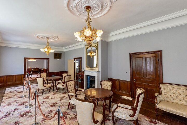 猪苗代湖のほとりにたたずむ「天鏡閣」は、1908(明治41)年に有栖川宮威仁親王の別邸として建てられた木造2階建ての西洋建築。明治の華やぎを今に伝える貴重な建物として、国の重要文化財に指定されています。 ルネサンス様式を基調とした外観も素敵ですが、館内はそれ以上に優美でクラシカルな空間。シャンデリアがきらめく室内装飾、繊細な意匠が施された調度品など、当時の上流階級の暮らしぶりを感じさせる空間が広がります。