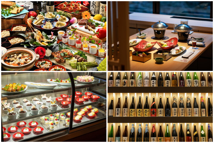 もうひとつの自慢は、旬の恵みと地場の食材をふんだんに使用した料理。前菜、お造り、鍋物など数品を席に運んでくれるお手前料理にプラスして、郷土料理や地元農家の新鮮な野菜、会津産のお米などが並ぶハーフバイキングを楽しめます。さらに、会津の地酒も豊富にラインナップ。気になる酒造のものを飲み比べしてみるのもいいですね。