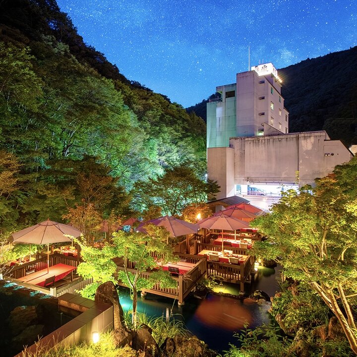 さらに期間限定で、東山温泉を流れる清流湯川の傍らに「水辺のダイニング 川どこ」が登場。水と光と風と夜空が一体となった特等席で、せせらぎに耳を傾けながらディナーやランチを味わうことができます。2026年の開催時期はHPで確認してくださいね。