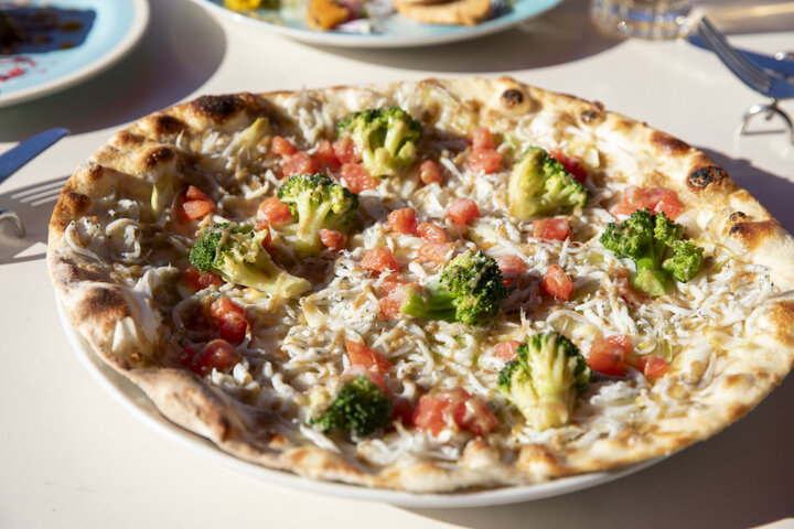 しらすたっぷりの「ピッツァ 七里ガ浜」※野菜は季節によって変わります