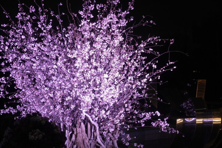 夜の噴水広場「ライトアップされた桜」