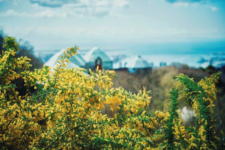 標⾼約400mの⼭上に位置し、港町神⼾の街並みが⼀望できるリゾート施設「神⼾布引ハーブ園/ロープウェイ」では、例年3月中旬~下旬ごろに「ミモザ」が見ごろを迎えます。 ミモザは、約100種のフレッシュハーブを植栽展示するハーブミュージアムに隣接する散歩道に植栽しています。高台のデッキからは、可憐なミモザ越しに神戸の景色と輝くガラス張りのグラスハウス(温室)の絶景を望むことができます。また、散歩道には、ウメやカラフルな野菜畑のほかこれからはコブシ、山桜などが彩りミモザと早春の花々・植物とのコラボレーションも楽しめます。ミモザの季節には、可憐なクリスマスローズにも出合えます。