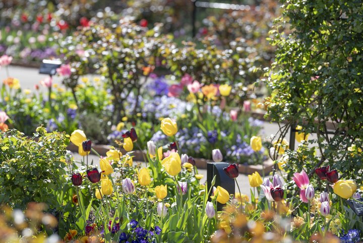 『練馬区立 四季の香(かおり)ローズガーデン』では、3月21日(土)から4月12日(日)まで「2026ハッピーイースター」を開催します。 今年も園内では、1万本を超えるチューリップが4月の上旬ごろに開花シーズンを迎えます。ガーデナーが厳選し、昨年の品種数を15品種超える84品種のチューリップが色鮮やかに咲き誇り、春の訪れを華やかに彩ります。また、ガーデナーによるアレンジメント教室やチューリップの摘みとり体験など、ローズガーデンならではのイベントを多数開催します。土日には、四季の香カフェがオープン。人気の「ローズソフト」やドリンクと日替わりのおやつが楽しめる「なごみセット」も限定販売します。