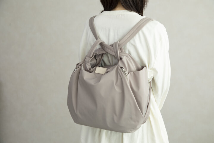 世界的デザイナー・山本耀司氏が手がけるブランド「Y's」の雑貨コラボーレーションとして生まれたブランド「Y'SACCS(イザック)」のナイロンバッグ。ショルダーとして肩掛けできるだけでなく、ショルダーストラップを左右に引っ張ると、なんとリュックに変身してしまうバッグです。一瞬でチェンジできるので、旅先にはもちろん、荷物が増えるデイリーシーンでも活躍してくれます。 表地には肌触りの良い高密度の撥水タフタを、裏貼りには厚手のニットを採用。軽さはそのままに、適度なハリ感も楽しめ、オフィスにも連れて行けそうです。