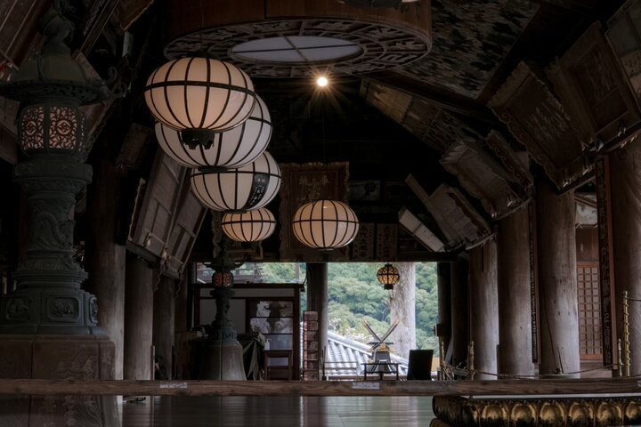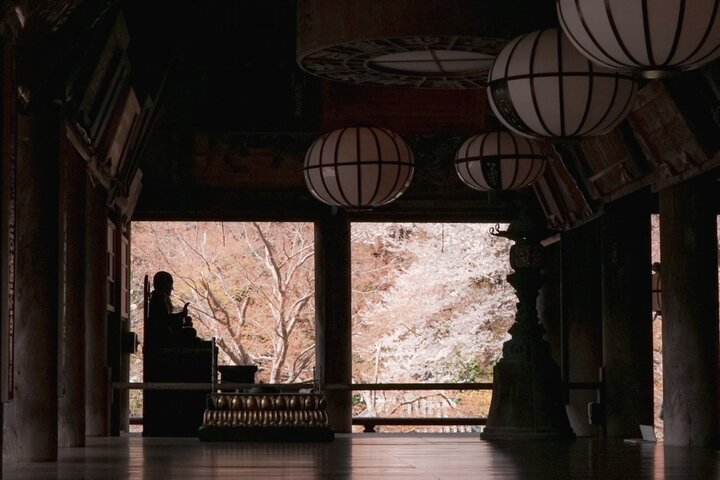 長谷寺の本堂は国宝に指定されており、その礼堂では今も「朝の勤行」が執り行われています。静けさに包まれた礼堂の空間では、心をそっと整えてくれるような厳かなひとときが過ごせます。木の温もりと趣のある礼堂越しに、四季折々の景色を眺めるのも楽しみのひとつです。