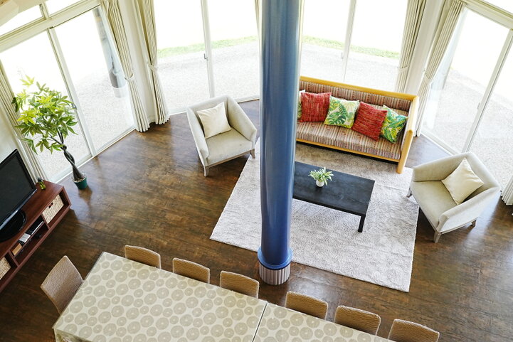 広大な敷地には独立したヴィラが点在。少人数向けのブロック貸しタイプと、最大20名まで利用できる一棟貸しタイプがあり、自由度の高いプライベート空間を満喫できます。デッキやバルコニー、露天ジャグジー付きの棟もあり、夜には満天の星空を眺めながらリラックスできますよ。