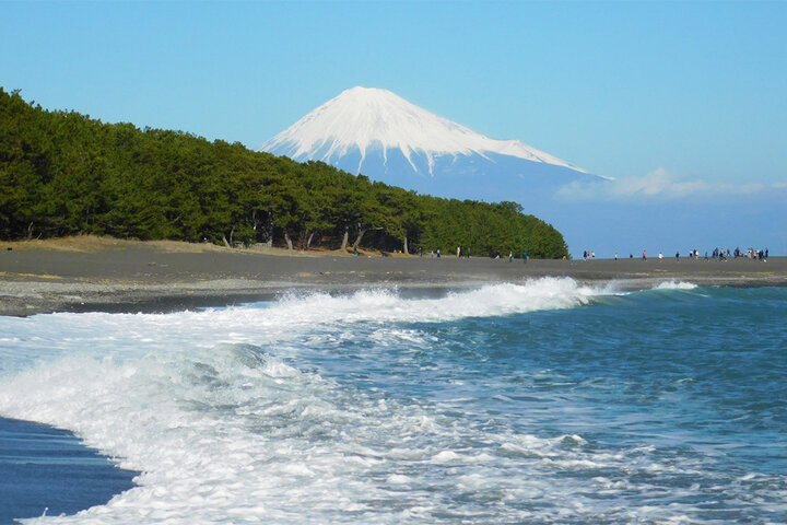 駿河湾をなぞる砂浜の先に、松林と富士山が顔を出す「三保松原」(提供:静岡市)