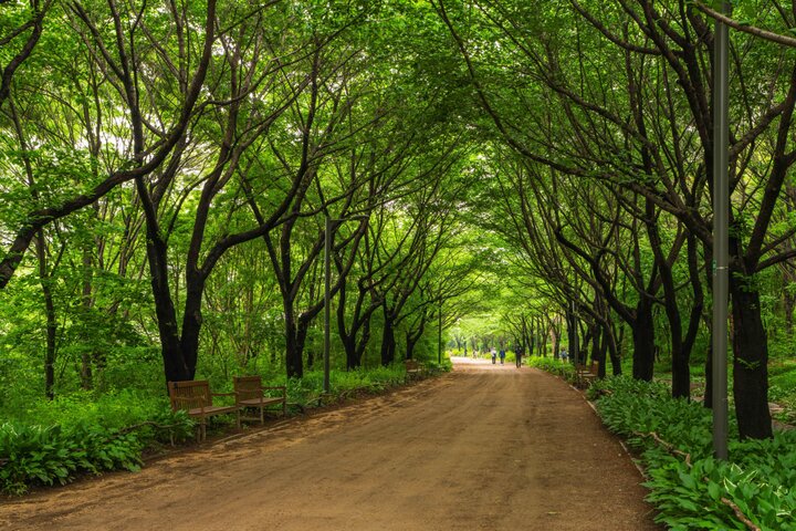 話題のショップやカフェが多い聖水エリアにある、ソウル市民のオアシス「ソウルの森」。広い芝生広場や森の散策路、文化芸術施設などがあり、自然と文化を同時に楽しめる公園です。園内には桜並木やベンチもあるので、春の訪れとともにピクニックをする人も。近くのカフェでパンやコーヒーをテイクアウトして、公園内で過ごすのもいいでしょう。