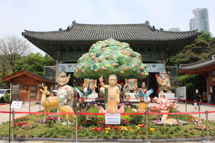 8世紀の新羅時代に創建されたと伝えられている、三成エリアにある仏教寺院。高層ビルが立ち並ぶ都会の真ん中で、ここだけ別世界のように静かな雰囲気と豊かな自然が広がります。韓国では祝日となる旧暦4月8日(2026年は5月24日)の「釈迦誕生日」を祝うため、その1か月ほど前から色とりどりの提灯が飾られる光景も圧巻。