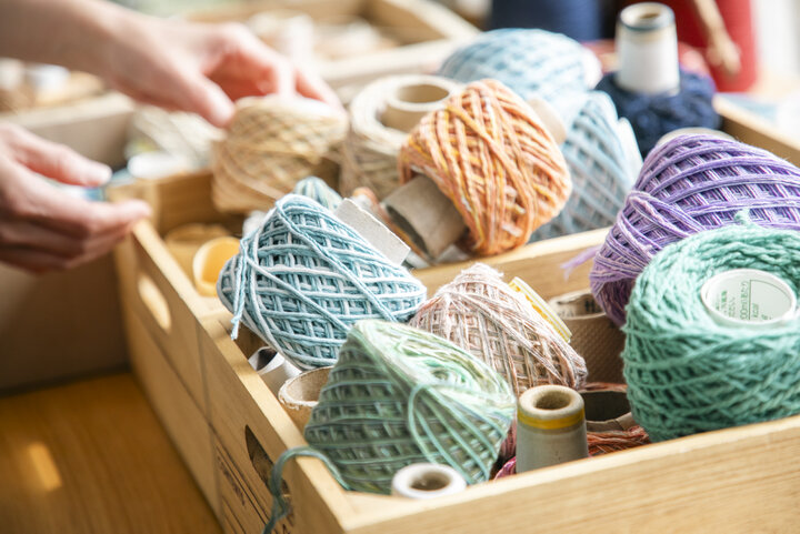 きれいな糸がいっぱいで迷ってしまう色選び。太い糸の方が短い時間で織ることができる