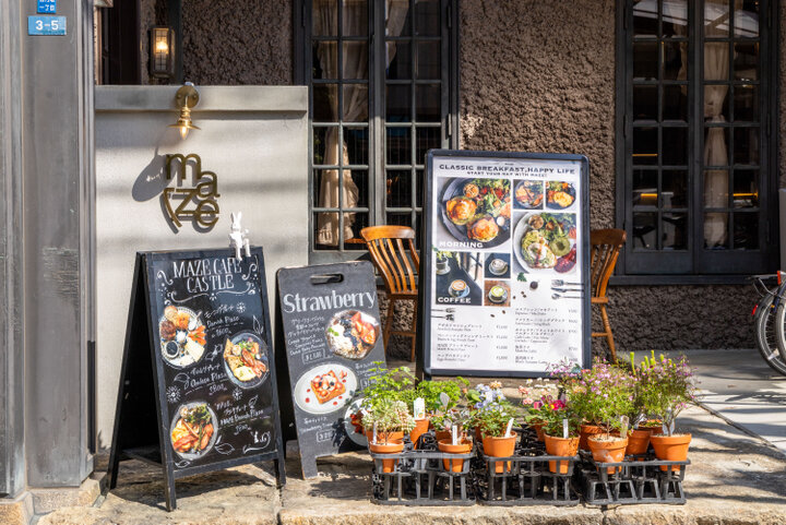 大阪・梅田や心斎橋などの中心地から20分前後で到着する「MAZE CAFE CASTLE」。大阪城公園や難波宮跡といった、歴史と自然を感じるスポットからも徒歩圏内です。静かなロケーションでゆったりカフェタイムを楽しみたい人にぴったりの一軒です。