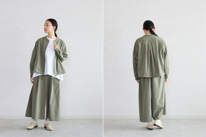 旅行や日常使いするならば。「薄くて軽くて、でもおしゃれで、春~秋口までずっと使えるものを!」という企画者の想いから誕生した、コラボセットアップ。手持ちの洋服にも合わせやすいデザインで、うすくて軽くて、動きやすい。 単品でも着まわしやすく、ブルゾン代わりに羽織れるトップスと、体形もカバーもばっちりなワイドパンツのセットです。 もちろん、機能面もぬかりありません。 軽い雨や日差しにも対応可能な撥水&UVカット機能素材を使用しています。UVカット率は、99%。春~秋までロングシーズン重宝します。