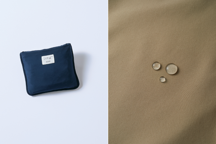 (左)内側の首元ポケットに本体をすっぽり収納できる、ポケッタブル仕様(右)撥水加工がされているので、雨が降りやすい梅雨シーズンや、海や川・プールなどへのおでかけが増える行楽シーズンにも◎