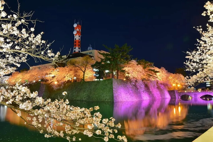 「日本さくら名所100選」に選ばれた臥竜公園では、ソメイヨシノを中心に約600本の桜が開花。竜ヶ池周辺には約160本が集中し、昼夜で異なる絶景を楽しめます。2026年4月1日(水)~4月19日(日)の期間は「臥竜公園さくらまつり」を開催。見頃期間中は18:00~22:00のライトアップを実施し、水面に映る夜桜が来園者を魅了します。 園内には動物園や遊具広場があり、ファミリー層にも人気。また、ボートに乗り池上から桜を楽しむ体験も可能です。名物「真っ黒おでん」や団子などのグルメも楽しめます。