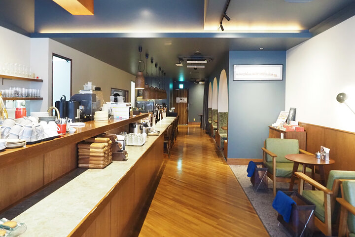 2023年のリニューアルを経て、店内は「昔ながらの渋い喫茶室」から一変。深いブルーの壁に柔らかな光が映える、モダンで落ち着いた空間に生まれ変わりました。