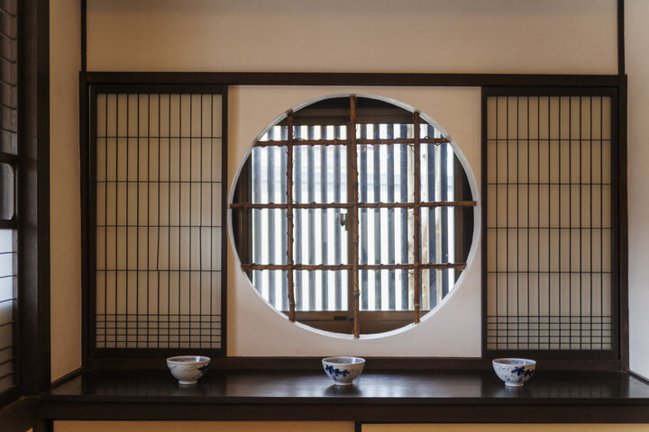 玄関付近は、丸窓や障子を活かした和風テイスト