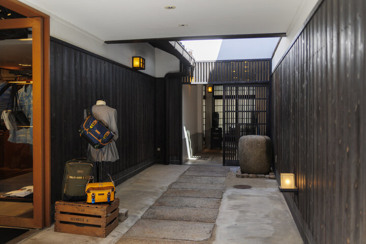 京都文化博物館別館(旧日本銀行京都支店)や1928ビル(元毎日新聞社京都支局)、SACRAビル(旧不動貯金銀行京都支店)など、明治時代から大正時代にかけて建てられたレトロモダンな名建築が点在する三条通へ。元呉服店の京町家を改装した「master-piece」京都店に向かって右手を奥へと進むと、カフェの入り口があります。