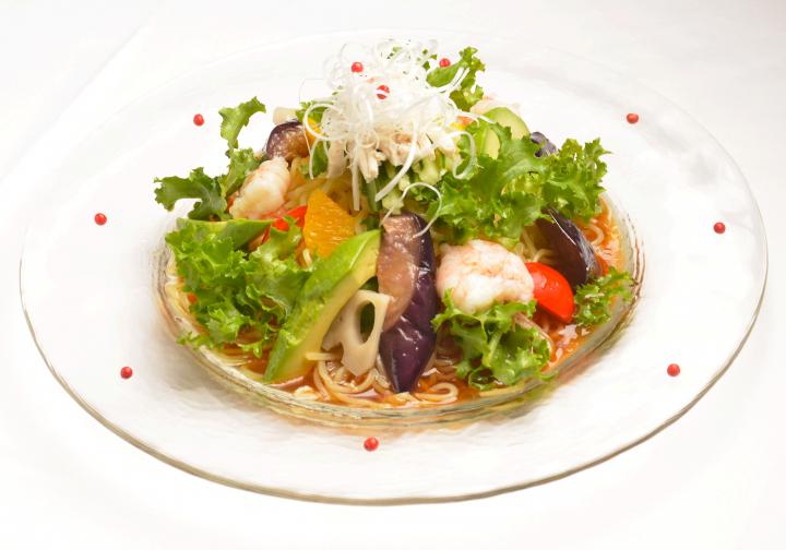「くらげ入り海老とアボカド・ジンジャー風味冷しそば」(1620円)
