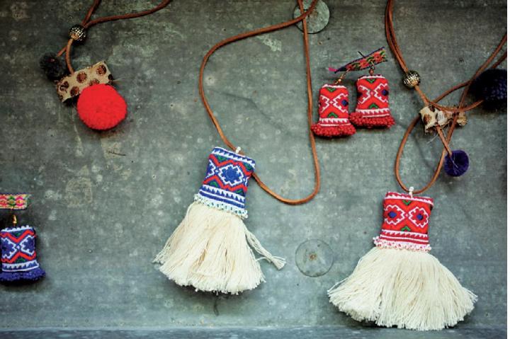 ネックレス4320円。白いタッセルに細やかな刺繍が映える。先に付いた ポンポンもかわいい