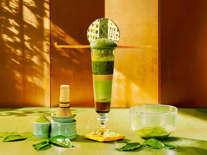モダンラグジュアリーホテル『メズム東京、オートグラフ コレクション』では、16階バー&ラウンジ「ウィスク」にて、2026年4月1日から6月30日までの期間限定で、抹茶の奥深い苦みとショコラのビター感を重ねた抹茶とガナッシュの「レイヤード・パフェ」を提供しています。 今回は、茶室の障子越しに差し込むやわらかな光と、円窓が景色を切り取る静謐さを着想源に、味わいの移ろいを一杯のグラスに描きました。トップには、茶室の円窓を思わせる丸いクッキーをあしらい、抹茶の濃厚さと軽やかな食感のコントラストを象徴的に表現。ほろ苦い抹茶ジュレ、ウイスキーガナッシュの芳醇な余韻、苺を丸ごと閉じ込めた抹茶パンナコッタが、層ごとに表情を変えながら、最後は抹茶とチョコレートの心地よいコクへと導きます。 サクサクとしたココアクッキー、障子の桟を思わせる繊細な網目をまとったホワイトチョコレート、香ばしいきな粉グリッシーニなど、和と洋をモダンに取り入れ、食感のアクセントを随所に散りばめました。障子越しの光が濃淡を生むように、抹茶の苦みとショコラのビターが層を重ねるほど立体的に広がります。