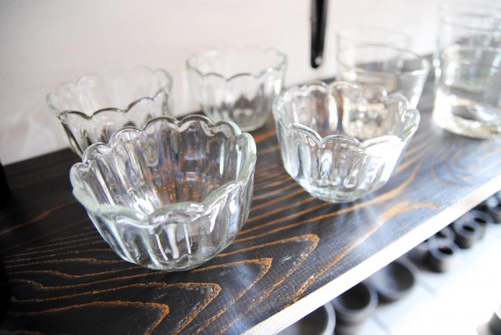 錫(すず)の酒器、箸、小皿など、これまでにご縁のあった、日本全国の作家さんの作品も、センスよく並んでいます。写真は、千葉県九十九里に工房をかまえる左藤玲朗さんの器2940円。どれも、気泡やゆがみから、柔らかさを感じる、温かい作品ばかりです。