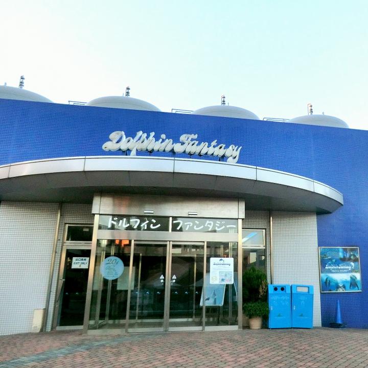 静まり返った夜のシーパラダイスは、暗闇の中にメリーゴーランドが浮かび上がり、幻想的な雰囲気。夜の水族館に泊まるという非日常のシチュエーションへの期待が高まり、ワクワクが止まりません。エントランスから5分ほど歩くと、会場となるイルカの水族館「ドルフィンファンタジー」に到着です。