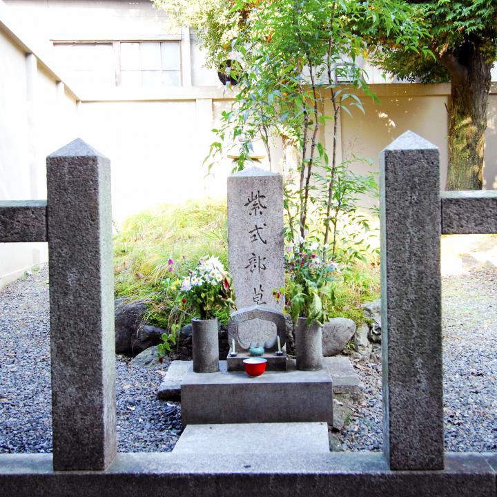 紫式部の墓が残るこの辺りの地名を“紫野(むらさきの)”といい、かつて平安京の北に位置する天皇ゆかりの地で、高貴な紫色の草花が彩る野原であったことから“紫野”と名付けられたとも。 紫野には平安初期、淳和天皇の離宮・雲林亭(うんりんてい)が営まれ、桜や紅葉の名所として『源氏物語』や『大鏡』にも登場し、一説には紫式部はここで余生を過ごしたことから紫野に墓が作られ、紫式部の“紫”は紫野に由来しているとも伝えられています。 とにもかくにも、千年の歴史を越えて読み継がれる『源氏物語』の筆者として愛され続ける紫式部の墓には、一年中、地元の人や熱烈な源氏物語ファンによって美しい花が供えられています。