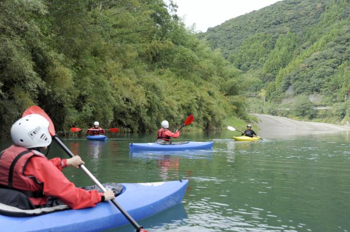 仁淀川にはもうひとつ誇るものがあります。 それは水の清らかさから夏の水遊びなどで多くの人に親しまれているということ。実際、仁淀川沿いにはキャンプ場が多数点在していて、夏になると多くの人がキャンプやバーベキューを楽しむ姿が見られます。国土交通省による夏の水遊びなどの利用率を示す「水辺利用率」でも日本一になったこともあるほどです。そんな人気のレジャースポットで一度は体験したいのがカヌーです。 「土佐和紙工芸村くらうど」では、カヌー体験も開催しているので、和紙が乾燥するまでの間にカヌーに挑戦することにしました。道具は全てレンタルできるから、手ぶらで楽しめるのも便利です。 穏やかな流れの中で練習できる半日コース(2時間5000円)なら、初めての人も安心。河原でインストラクターさんのレクチャーを受け、さあ出発しましょう! カヌーの操作はパドルで曲がりたい方向を漕ぐのが基本。不安定なカヌーですが、パドルを水に漬けることで船体が安定します。 時には漕ぐのを止めて流れに身を任せてみましょう。川底に手が届きそうなほど透明感のある川面に身を置くと、まるで空中に浮かんでいるようです。日差しの加減によっては、流れがコバルトグリーンに見えます。カヌーにゆられながらそんな清流に集う野鳥や魚など、水辺の豊かな自然を感じながら気持ちの良い時間を過ごせますよ。 ○土佐和紙工芸村くらうど [所]高知県吾川郡いの町鹿敷1226 [TEL]088-892-1001、088-892-0127(紙漉体験実習館) [HP]http://www.qraud-kochi.jp/