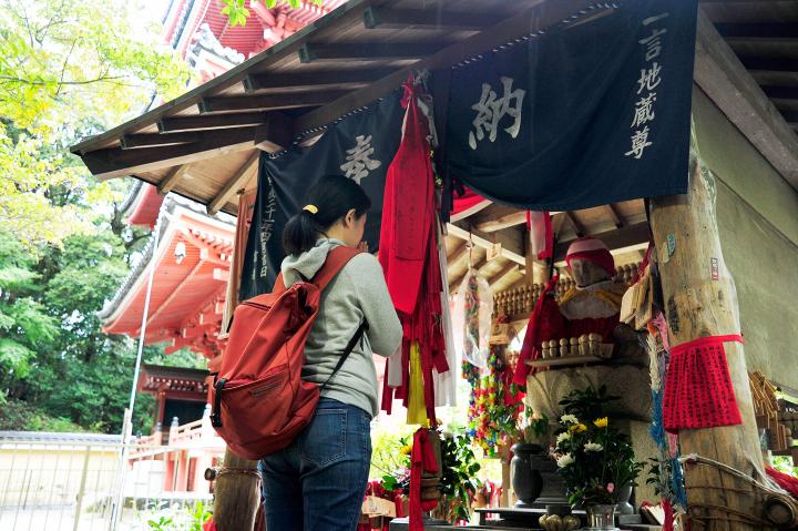牧野植物園に隣接しているのが、四国霊場第31番札所「竹林寺」。江戸時代には土佐藩主・山内家から手厚く保護され、各地から学僧が集い宗教・文化の発信地となりました。幕末には土佐の民謡「よさこい節」にも歌われる、修行僧・純信とお馬の悲恋物語の舞台にもなりました。 境内には国重要文化財の本堂をはじめ、数々の文化財を保管展示している宝物殿、国名勝にも指定されている庭園など、歴史的価値の高い見どころが豊富です。 なかでも屹立する赤い五重塔の向かいに、ひっそりと佇む「一言地蔵」は、パワースポットとしても人気があります。その名のとおり、本当にかなえたいことを一つだけ叶えてくれると言われています。願いごとが成就した人は、こけしをひとつ置いていきます。地蔵の周囲に並ぶかわいいこけしの数を見れば、多くの人の願いが叶っていることがわかります。 今回の高知の旅での素晴らしい出会いや発見に感謝しながら、そっとお地蔵さんに手を合わせました。 ○竹林寺 [所]高知市五台山3577 [TEL]088-882-3085 [時間]8:30~16:30(閉門17:00) [HP]http://www.chikurinji.com
