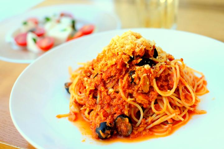 たくさんさんぽしたら、横浜マリンタワーでランチ。 今日は1階にある「ザ バンド」で、ツナと黒オリーブのトマトソーススパゲティを注文。モチモチのパスタにツナとトマトソースが絡んで濃厚な味わい。黒オリーブの香りがよく、味にも見た目にも良いアクセントになっていました。 大きなお皿にのった料理を撮影するときは、お皿ごと全部写そうとせずにパスタに寄るとプロみたいに撮れるそう。X-A1はしっかり背景がぼけるので、パスタが引き立っておいしそうな写真を撮ることができました。